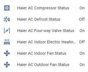 compressor_status (Optional): A binary sensor that indicates Haier climate compressor activity. All options from Binary Sensor.