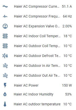 Additional sensors for Haier Climate device. These sensors are supported only by the hOn protocol.
