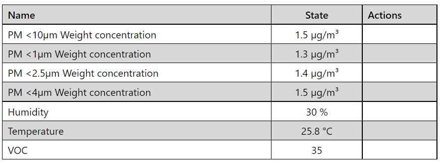 pm_10_0 (Optional): The information for the Weight Concentration sensor for coarse particles up to 10μm. Readings in µg/m³.