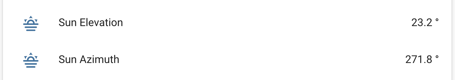 The sun component allows you to track the sun’s position in the sky. Calculations are done every 60 seconds.
