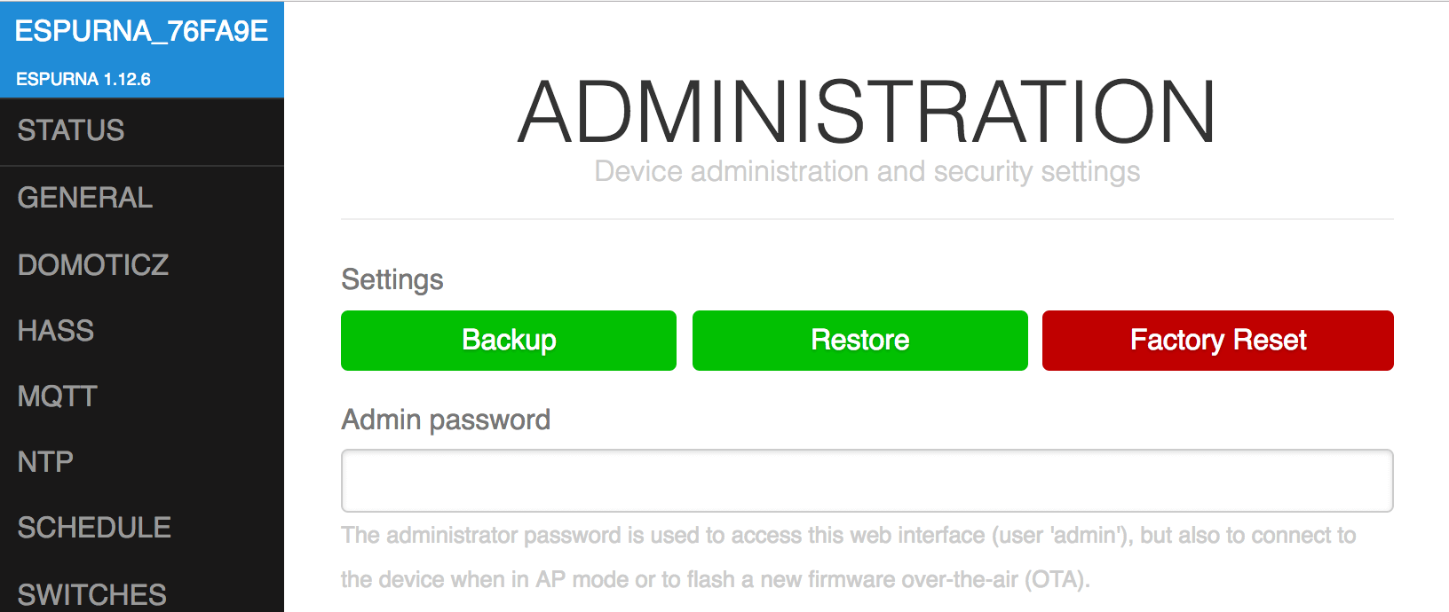 Migrating from previous ESPurna setups is very easy. You just need to have ESPHome create a binary for you and then upload that in the ESPurna web interface.
